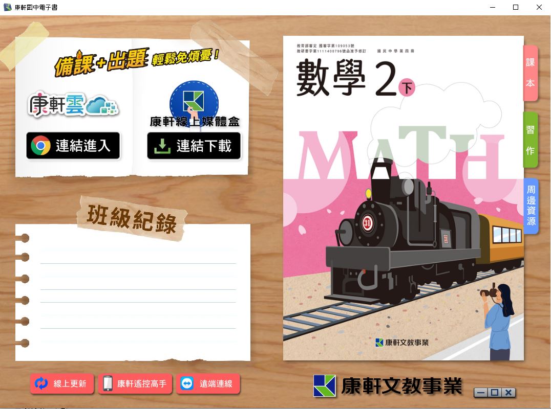 111學年下學期 國中 康軒版 數學電子書 2年級(含課本、習作含解答、教學資源)教學光碟